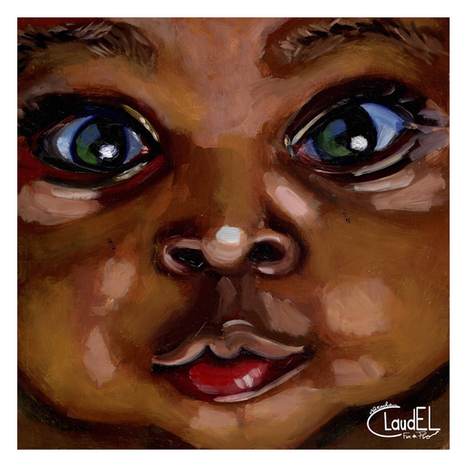 Baby Love 1 was painted originally with rich oil paints on a 12"x12" canvas paper. Look at the brushstrokes and these eyes! So cute!