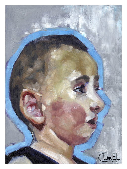 Natacha painted him to support Motee's family to tell the world about their story. Originally painted on an 12" x 16" loose canvas with striking, bold oil colors, this piece captures the depth of their plea.