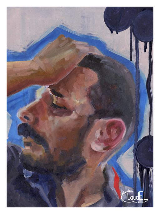 Natacha painted him to support his aim to tell the world about his story. Originally painted on an 12" x 16" loose canvas with striking, bold oil colors, this piece captures the depth of their plea.