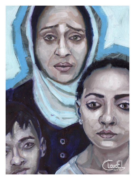 Natacha painted them to support their aim to tell the world about their stories. Originally painted on an 12" x 16" loose canvas with striking, bold oil colors, this piece captures the depth of their plea.