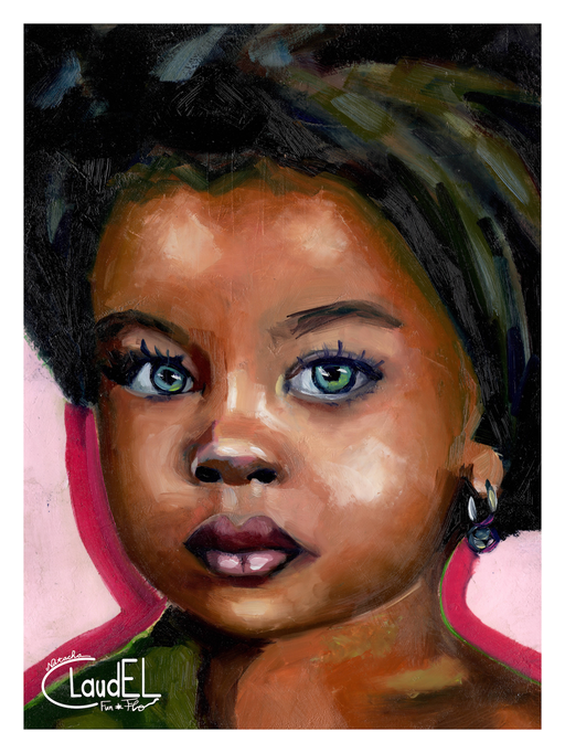 Originally painted with rich oils on a 16" x 20" loose canvas, I Am Love captures the spirit of a young girl whose gaze reflects curiosity, wisdom, and beauty. The bold colors bring this portrait to life.