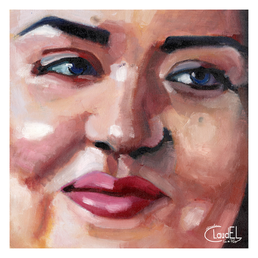 This portrait captures the striking details of Louise Aubrey’s face, reflecting the vibrancy, warmth, and power of her personality. Every brushstroke highlights her engaging presence, making this piece as dynamic as the woman herself.